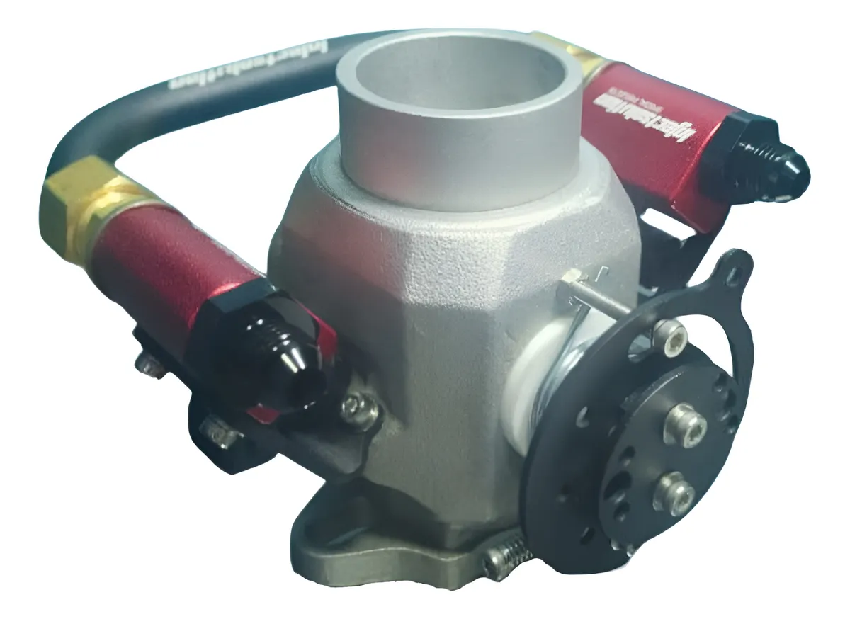 A TBI 42mm da InjectSolution possui o corpo interno que aumenta a fluidez, velocidade e volume do fluxo de ar.